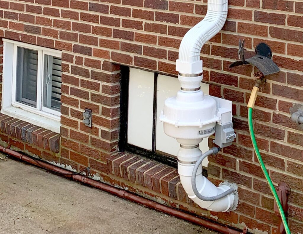 A radon mitigation system in Zionsville works by venting out contaminated air using fans mounted on an exterior wall near an opening, such as garage doors, so fresh air from outside can come rushing into rooms where high levels have been detected.